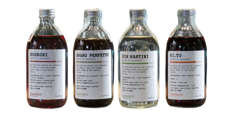 Il progetto DRINK|IT nasce da un’idea di Emanuele Broccatelli, eclettico e geniale Barmanager romano e Valeria Bassetti storica collaboratrice di importanti aziende del settore. Nel loro laboratorio nei pressi di Roma mettono tutta la loro esperienza e passione miscelando e imbottigliando primi tre prodotti della linea: -Gin Martini -Negroni -Amaro perfetto