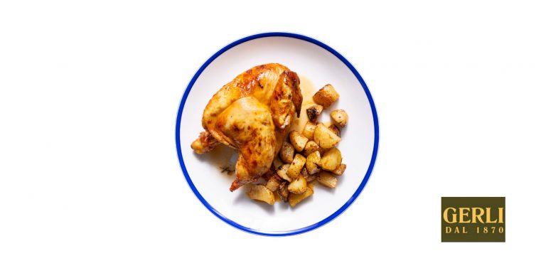Quello di Gerli è un pollo ruspante allevato all’aperto, senza uso di antibiotici. Marinato in un mix di aromi e spezie per almeno 24 ore, cotto intero lentamente per un’ora alla brace di carbone nel girarrosto, per un gusto unico e inconfondibile. Il menù rispecchia perfettamente la filosofia del brand che trae insegnamento dalla tradizione per migliorare ciò che è stato tramandato , utilizzando i migliori prodotti e rispettando i tempi che una buona cucina richiede.