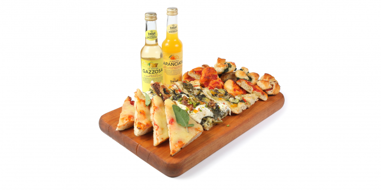 pizze, che condisce con verdure di stagione e affettati e salumi di altissima qualità.