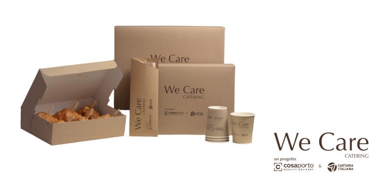 We Care è la linea di packaging ecosostenibile, plastic free, dedicata al mondo del catering. E’ composta da tre lunch box, un bicchiere, un porta posate riciclabili nella carta e da un tovagliolo compostabile. Una linea ecosostenibilie non solo per i materiali con cui è realizzata, ma anche per la filosofia da cui nasce: le lunch box infatti sono state pensate per evitare gli sprechi alimentari e conservare gli eventuali avanzi di cibo post business lunch o eventi.
