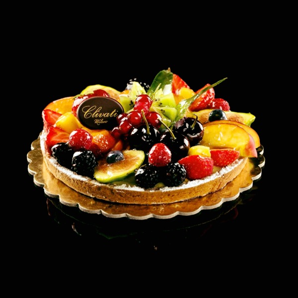 Frutta fresca di stagione adagiata su una soffice crema pasticcera con una base di pasta frolla.
